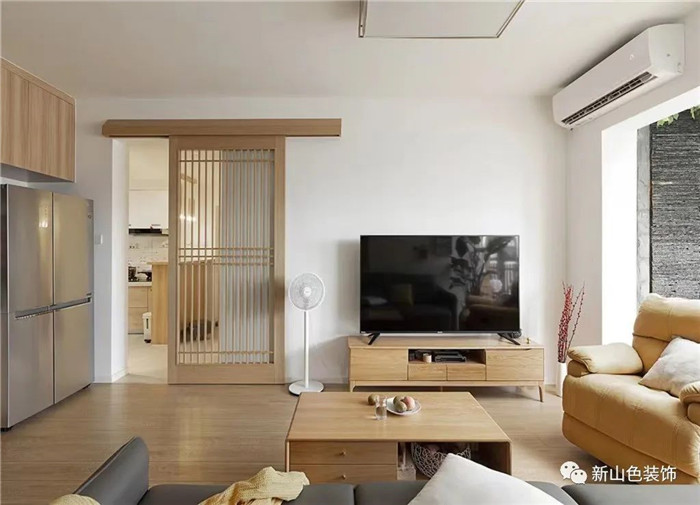 设计师将厨房进客厅的门洞设计成一扇通透的推拉门,它不但是区分厨房与客厅的一扇门,更是一个衬托出日式风的造型背景。